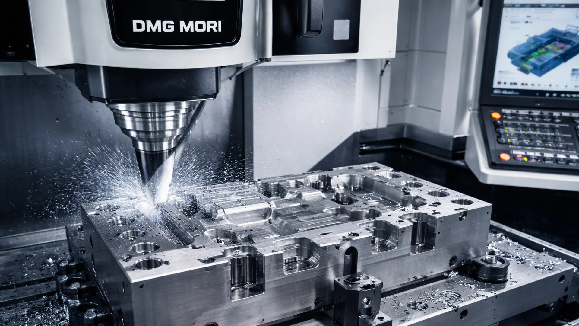 – Frezarki CNC trzy i sześcio osiowe marki DMG MORI, CHMER,